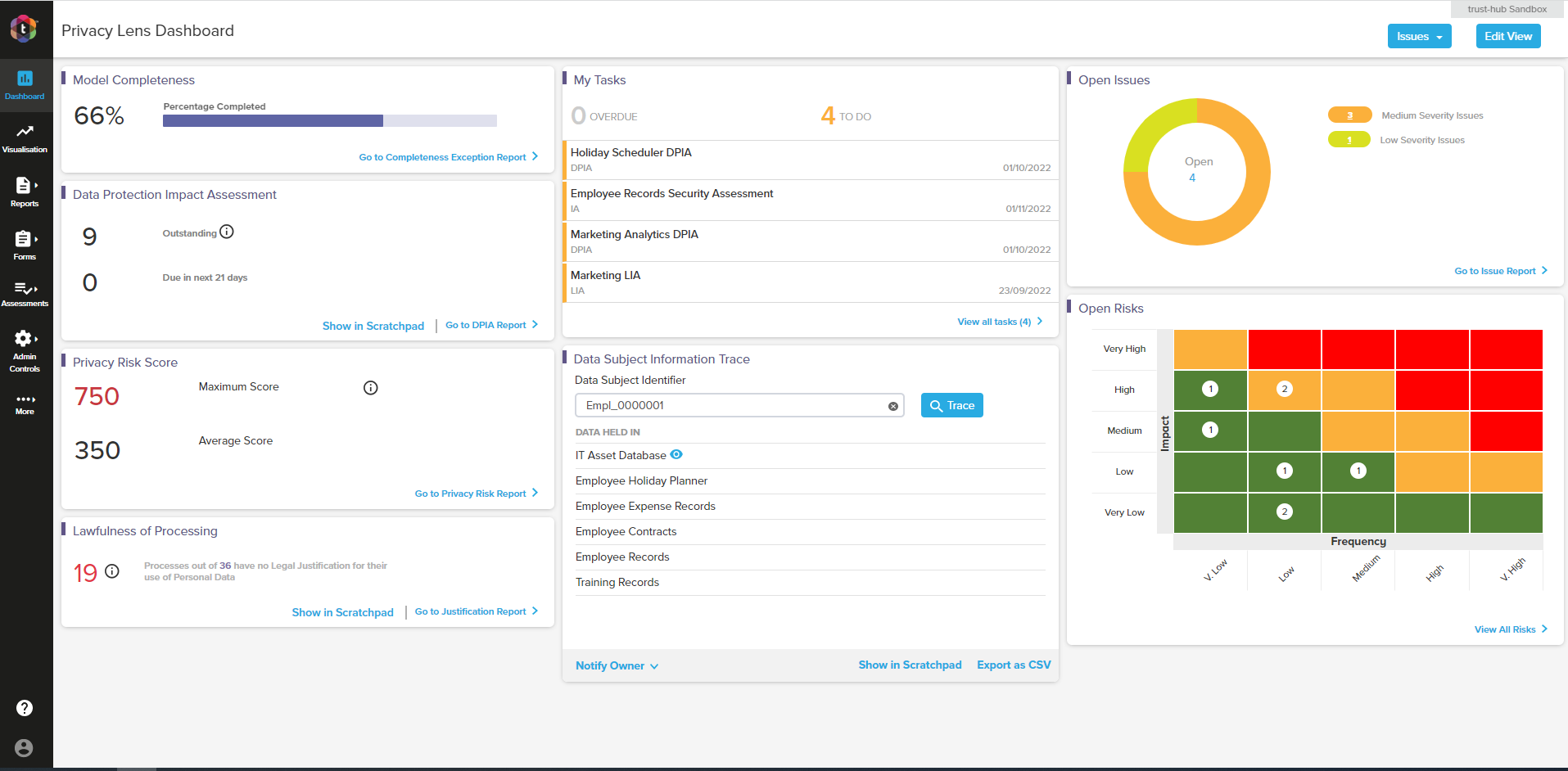Use trust-hub’s Privacy Lens to build an accurate picture of where personal data resides within a business by combining both automated and manual strategies.