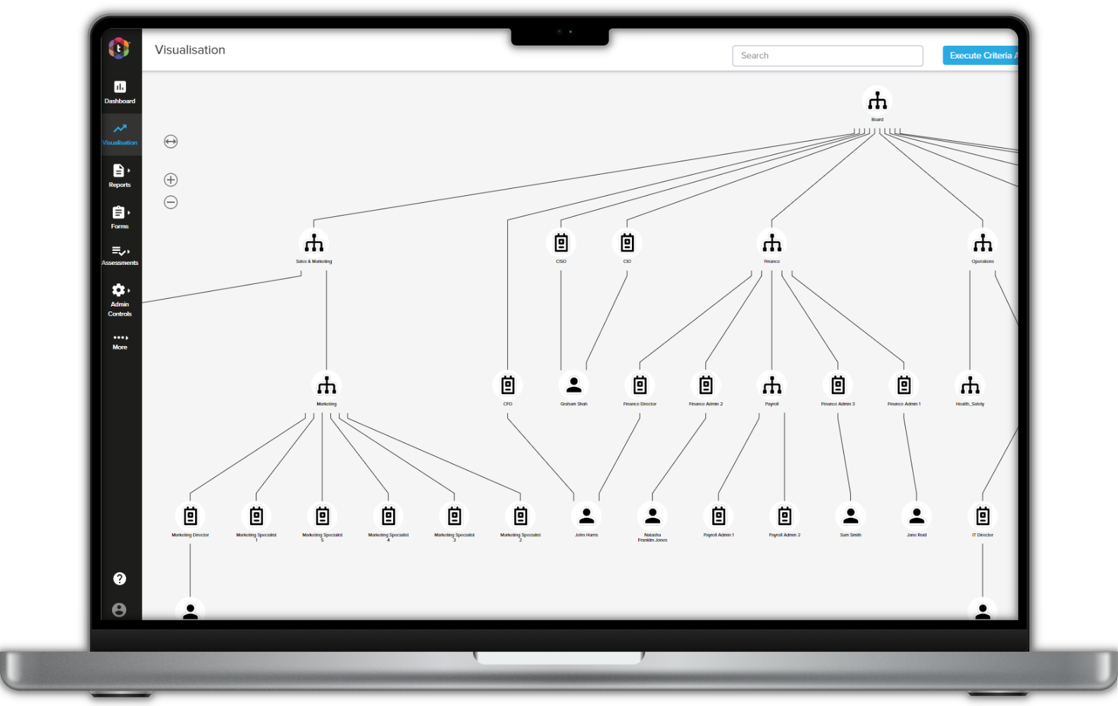 This data is then presented as an interactive visual model that shows how it relates to people, processes, places and platforms.